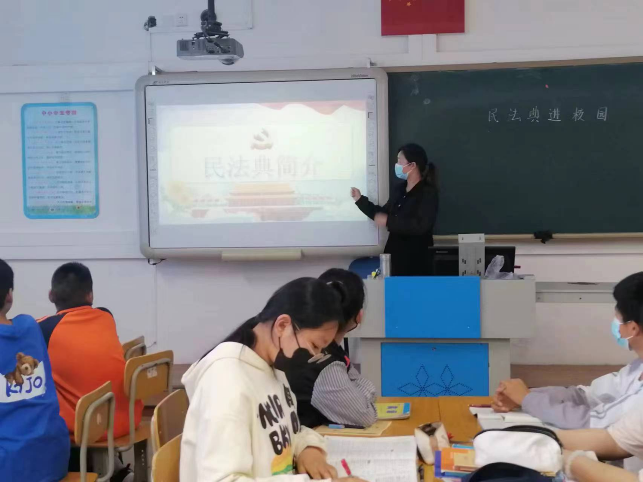 同日,各班级召开了《民法典进校园》主题班会,活动中,班主任化身法治宣传员,运用通俗易懂的语言向学生们讲解学习《民法典》的重要意义,并结合学生生活实际,简练生动地向学生普及了《民法典》《未成年人保护法》《义务教育法》等法律知识,进一步增强了学生的法治观念和法治精神。