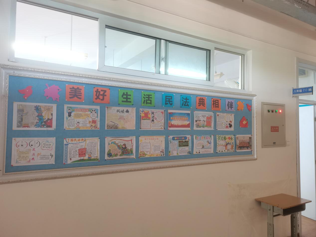 各班通过制作以“美好生活,民法典相伴”为主题的手抄报,进一步增强了同学们的法治观念,提高了他们的辨别是非、自我保护和自我防范的能力,进一步引导同学们养成自觉守法、遇事找法和解决问题靠法的习惯,营造了良好的校园法治教育氛围,推动了我校校园法治文化的建设。
